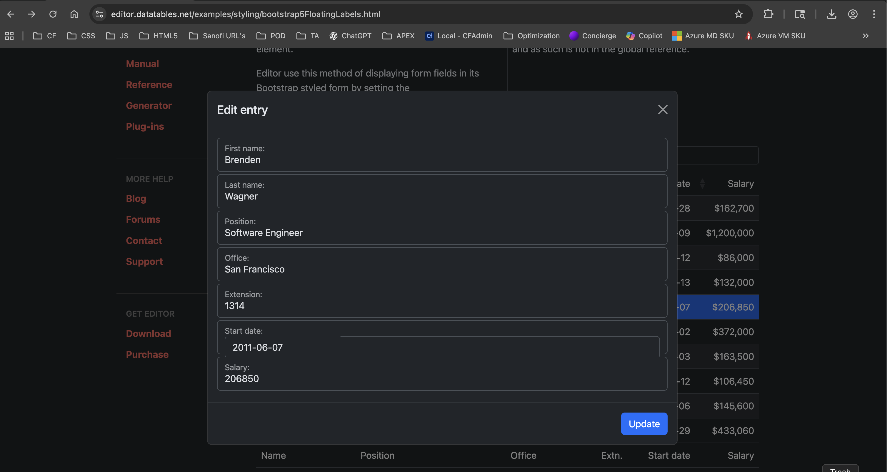The date input for the editor with bootstrap5 styling and floating labels is malformed. It has two overlapping input boxes.