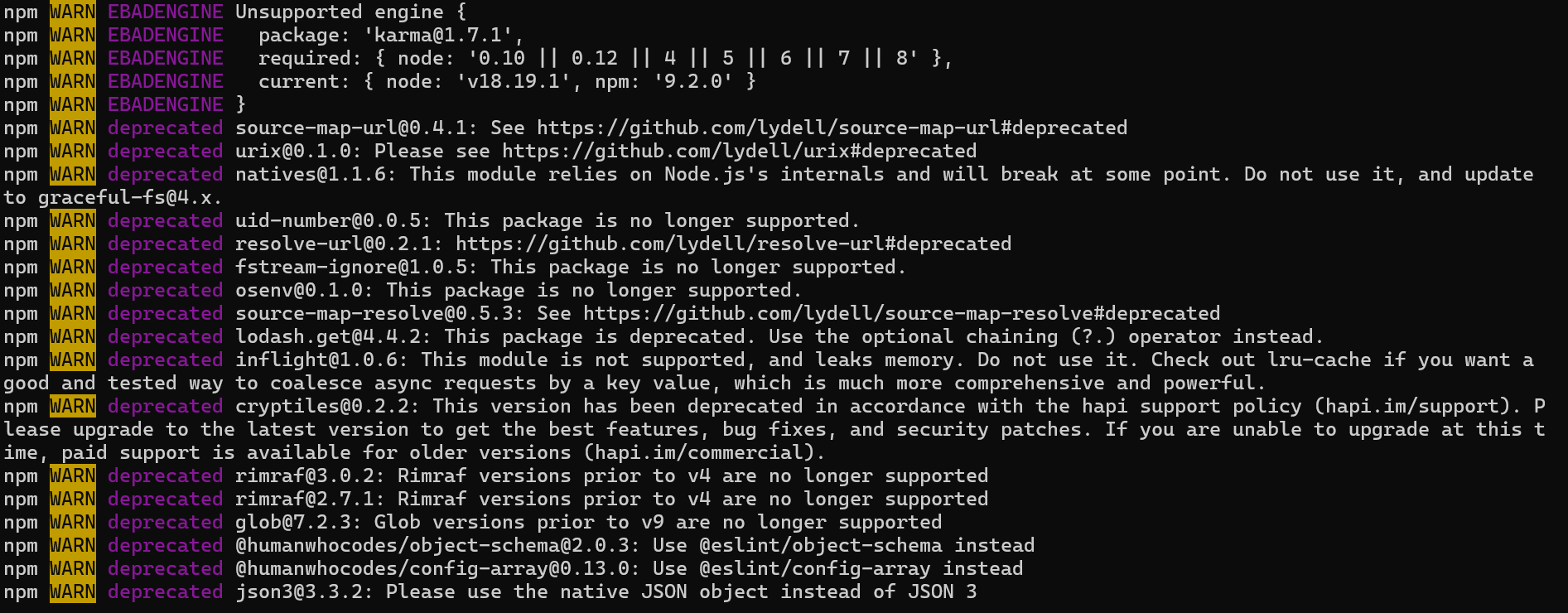 2. There's a lot of dependency-related warnings upon dependency installation with npm install