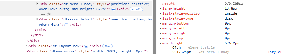 Description of problem: When horizontal scrolling is active ('scrollX': 'true'), the horizontal scroll bar disappears when the screen height is reduced. This did not occur with 1.13.6. I believe the root cause is the change from this dom setting: