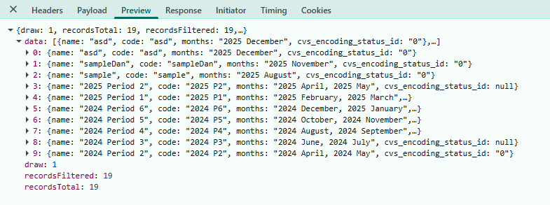 I'm having a problem. DataTable stuck on loading/processing but it has ajax response. No errors but my DT is not loading any data. I'll provide my scripts here. Thank you.