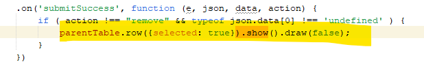 draw()orajax.reload()as part of the updated process. You can pass in a paging parameter to both API's to control staying on the same page. Pass infalseas the first aprameter todraw()or the second parameter toajax.reload().If this doesn't help then at a minimum post the to being used to update the row. Better is a link to a test case showing the issue so we can help debug.