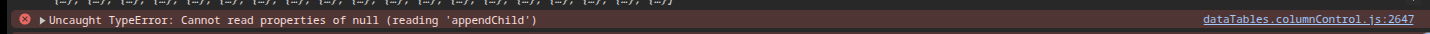 Looks like the error on line 2647 is where ColumnControl is populating the header (assuming you are using version 1.1.1):