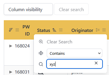 searchText: contains, notContains, equal, notEqual, starts, ends, empty, notEmpty