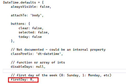 I changed the below code in the DateTime.defaults function