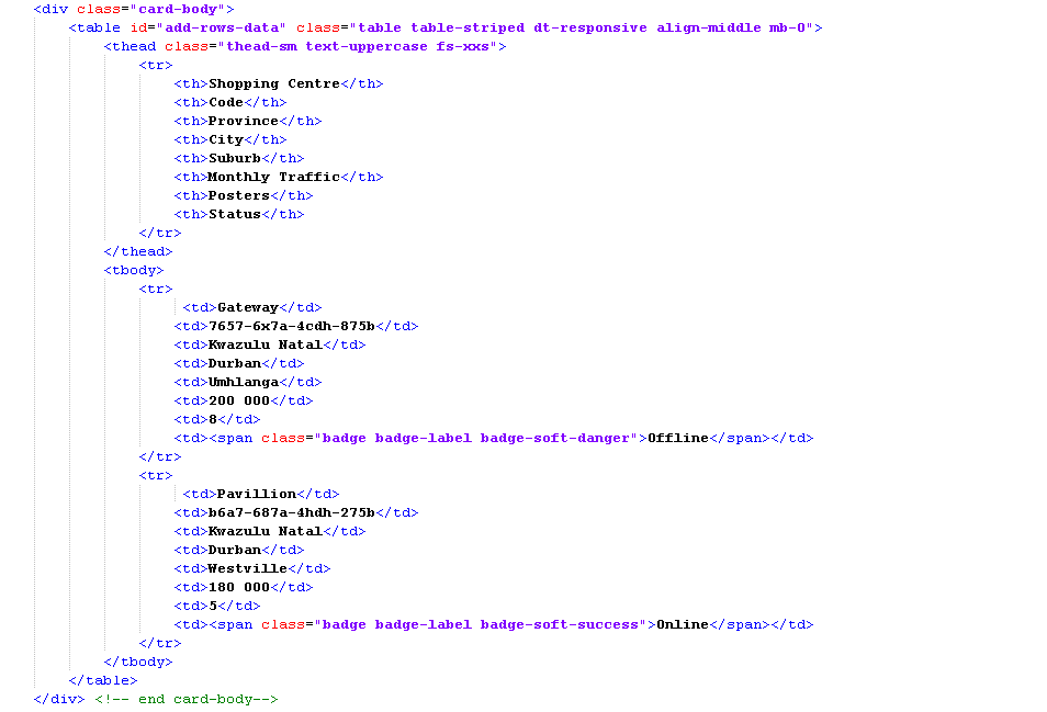 assets/plugins/datatables/dataTables.min.js"Then I get the correct table header but none of the features are there ie, add row, column sort