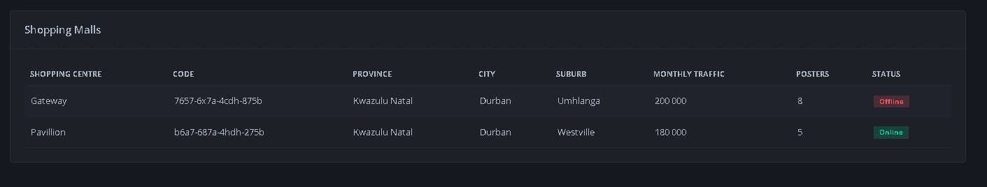 <th>Shopping Centre</th>