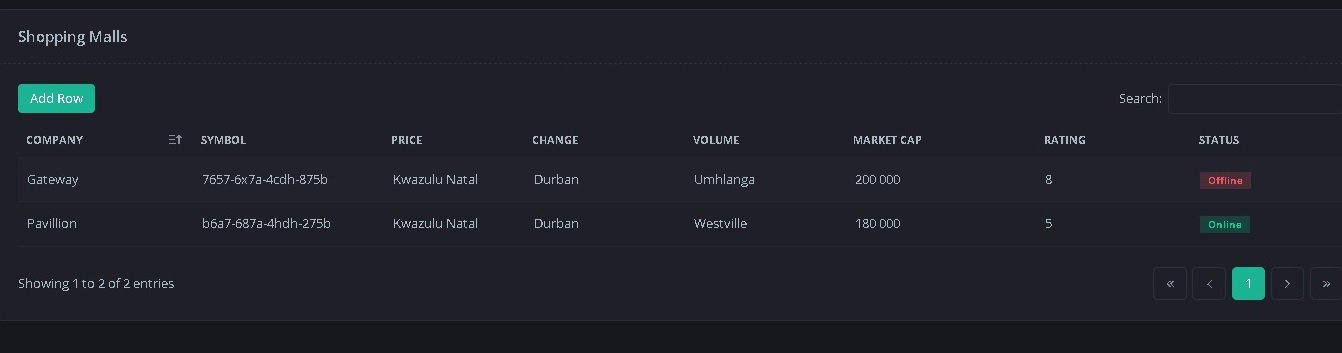 I also want to change the Button name from Add Row to Add Shopping Centre