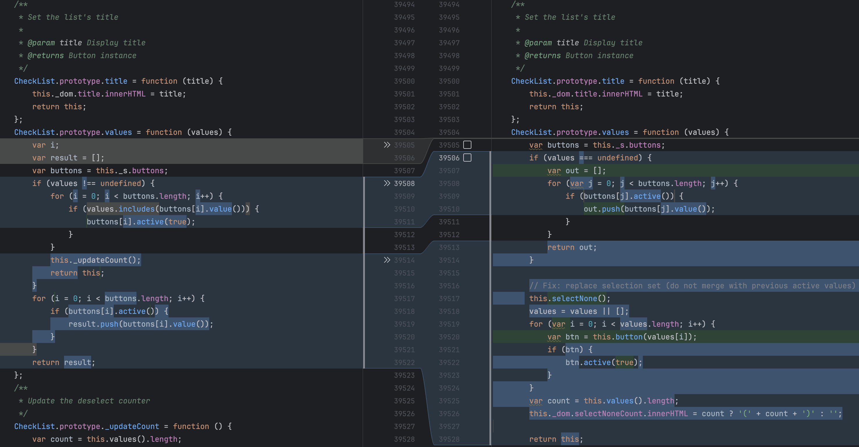 checkList.values(values); // always apply, including empty => clear